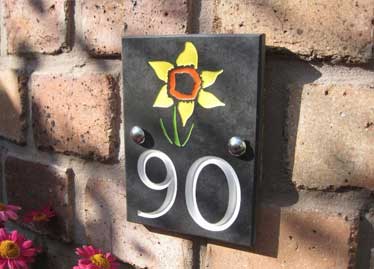 Celebrate Walesβ national flower and bring charm to your home with our Daffodil Motif Slate House Number Sign. Crafted from natural slate with bevelled edges, each plaque features a beautifully engraved daffodil, delicately hand-painted in vibrant yellow and green to create a cheerful, lasting design.