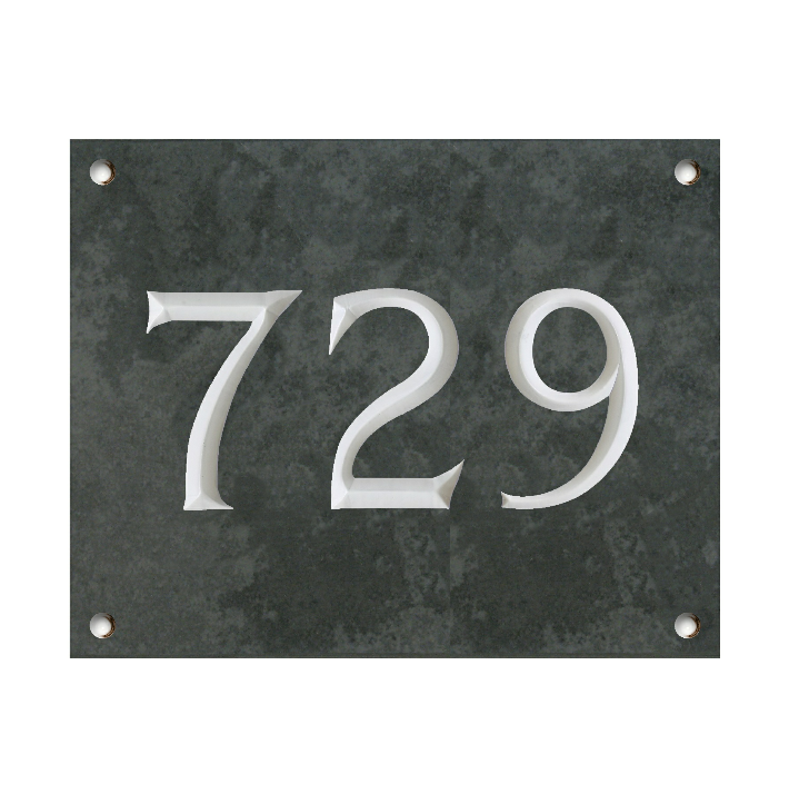 These premium engraved slate numbers are the best you can buy. Not to be confused with laser etched slate numbers (which are not engraved) our slate numbers have a beautiful polished surface with beveled edges. Deeply engraved, each number has 3 coats of white paint applied, to make them extremely visible and durable.