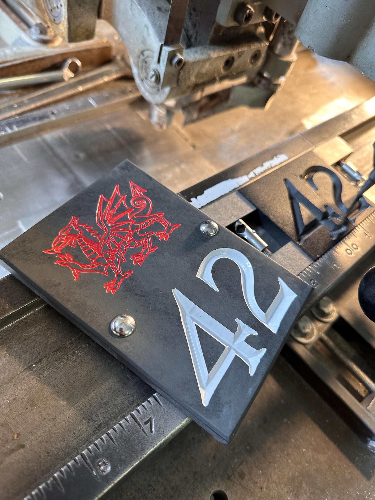 The numbers are then given two layers of base paint, and a final layer of high gloss finish, this creates a brilliant white number. The slate is then waxed to bring out the natural colours of the slate and then finally it is carefully wrapped and packed.